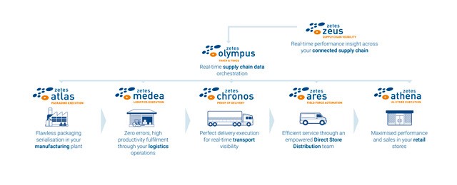 Ergänzend zu den Supply Chain Execution-Lösungen bietet Zetes mit ZetesOlympus und ZetesZeus darüber hinaus zwei Lösungen für Supply Chain- und Transport Visibility sowie Traceability an.