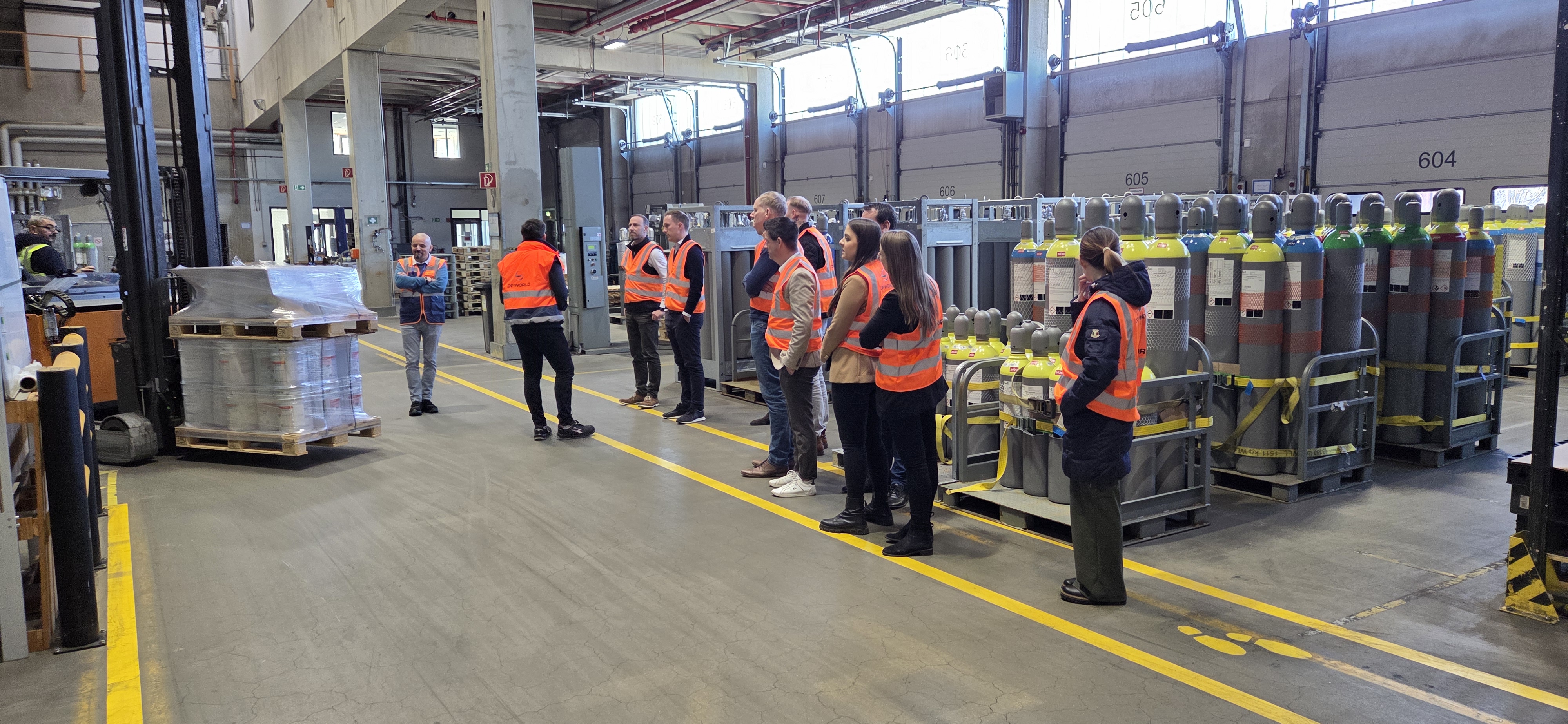 Im Rahmen der 27. Sitzung des Fachkreises Logistikimmobilien wurde eine Exkursion zu ROM-Technik, einem auf Gebäudetechnik spezialisierten Unternehmen durchgeführt. Nach der Vorstellung der Unternehmens- und Leistungsbereiche fand hierbei eine Besichtigung des wärme- und strömungstechnischen Labors statt, bei der die Teilnehmenden einen umfassenden Einblick in die vor Ort vorhandenen Modell-Versuchsanlagen bekamen. Hierbei konnten sie sich über verschiedene Forschungsbereiche informieren, beispielsweise zur Entrauchung von Tunneln oder Gebäuden, der Forschung zu optimierten Deckenelementen zur effizienteren Nutzung von Deckenstrahlern oder auch zu intelligenter Steuerung für Beleuchtung, Lüftung und Heizung.