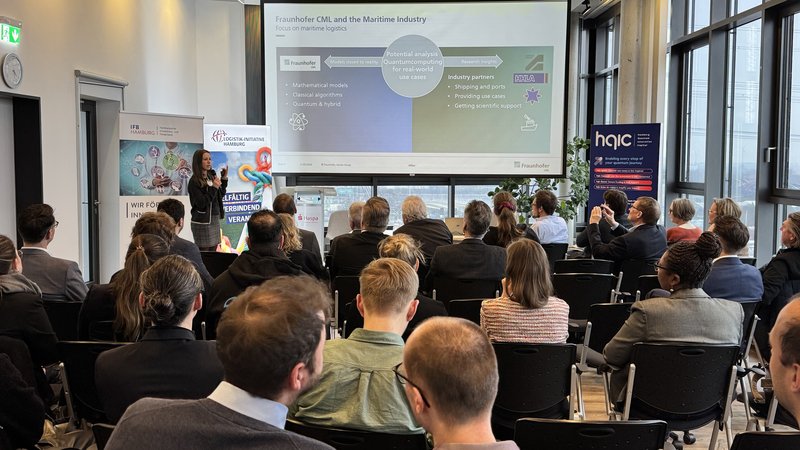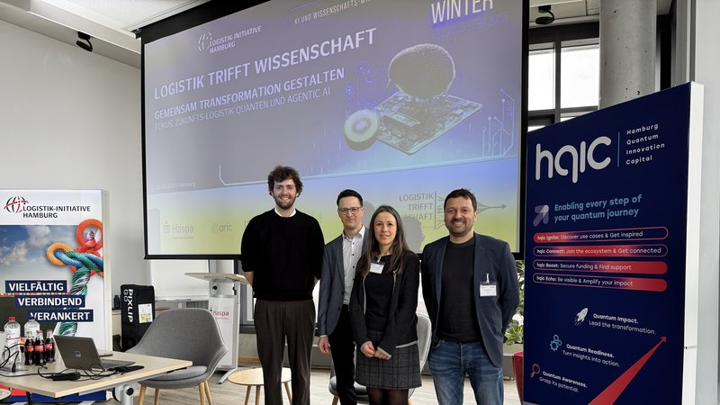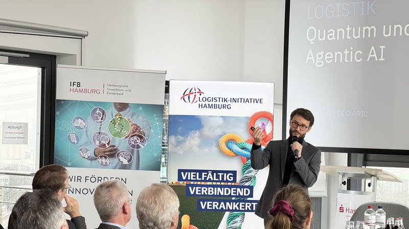 Anknüpfend an diese technologische Bestandsaufnahme widmete sich der erste thematische Schwerpunkt der „Quantum Awareness“. Unter Moderation von Benedikt Mehmel (ARIC) wurde aufgezeigt, dass Hamburg bereits heute ein zentraler Anwendungsstandort für Quantentechnologien ist. Der Fokus lag dabei explizit auf der praktischen Umsetzung und dem konkreten Potenzial für die Logistik, statt auf rein physikalischen Grundlagen. In dieser Session präsentierten Dr. Anisa Riszvanolli (Fraunhofer CML), Dr. Joseph Doetsch (Lufthansa Industry Solutions) und Dr. Christian Ertler (ParityQC), wie Quantencomputing heute aus der Domäne kommend erprobt wird. Dabei wurde deutlich, dass die Entwicklung von Teillösungen für hochkomplexe Optimierungsprobleme in Greifweite rückt.