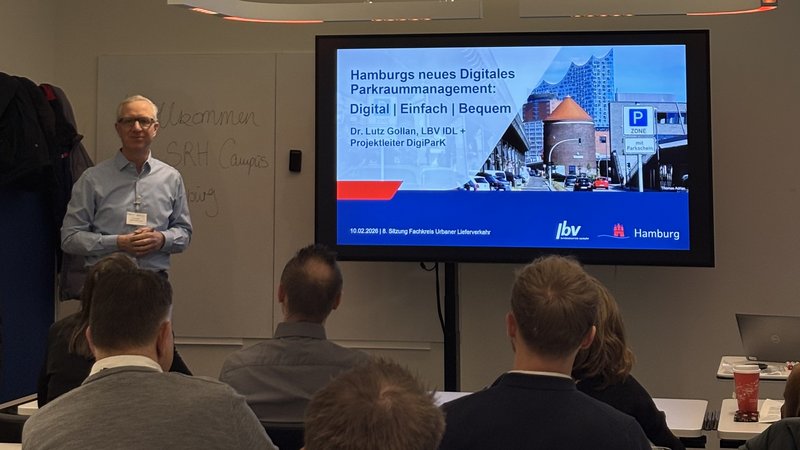 Die 8. Sitzung des Fachkreises Urbaner Lieferverkehr fand am 10. Februar 2026 auf dem Campus der SRH University in Hamburg statt. Im Mittelpunkt der Veranstaltung stand das Thema „Digitales Parkraummanagement und Regelwerk für Lieferflächen“.