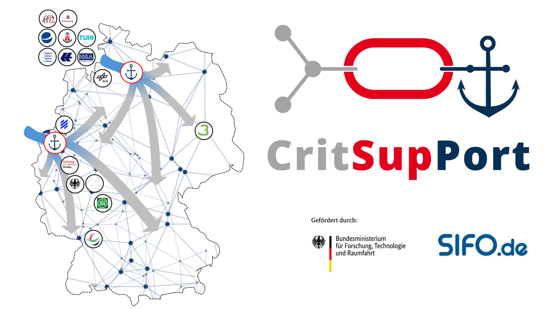 Das Projekt CritSupPort, gefördert mit Mitteln des Bundesministeriums für Forschung, Technologie und Raumfahrt, widmet sich der Frage, wie die Versorgung sichergestellt werden kann, wenn diese Knotenpunkte durch solche Krisenereignisse beeinträchtigt sind. Ziel ist es, Lösungen und Verfahren für ein sektorübergreifendes Risiko- und Krisenmanagement des Güterumschlags zu entwickeln, wobei die Branchen Ernährung und Gesundheit im besonderen Fokus stehen.